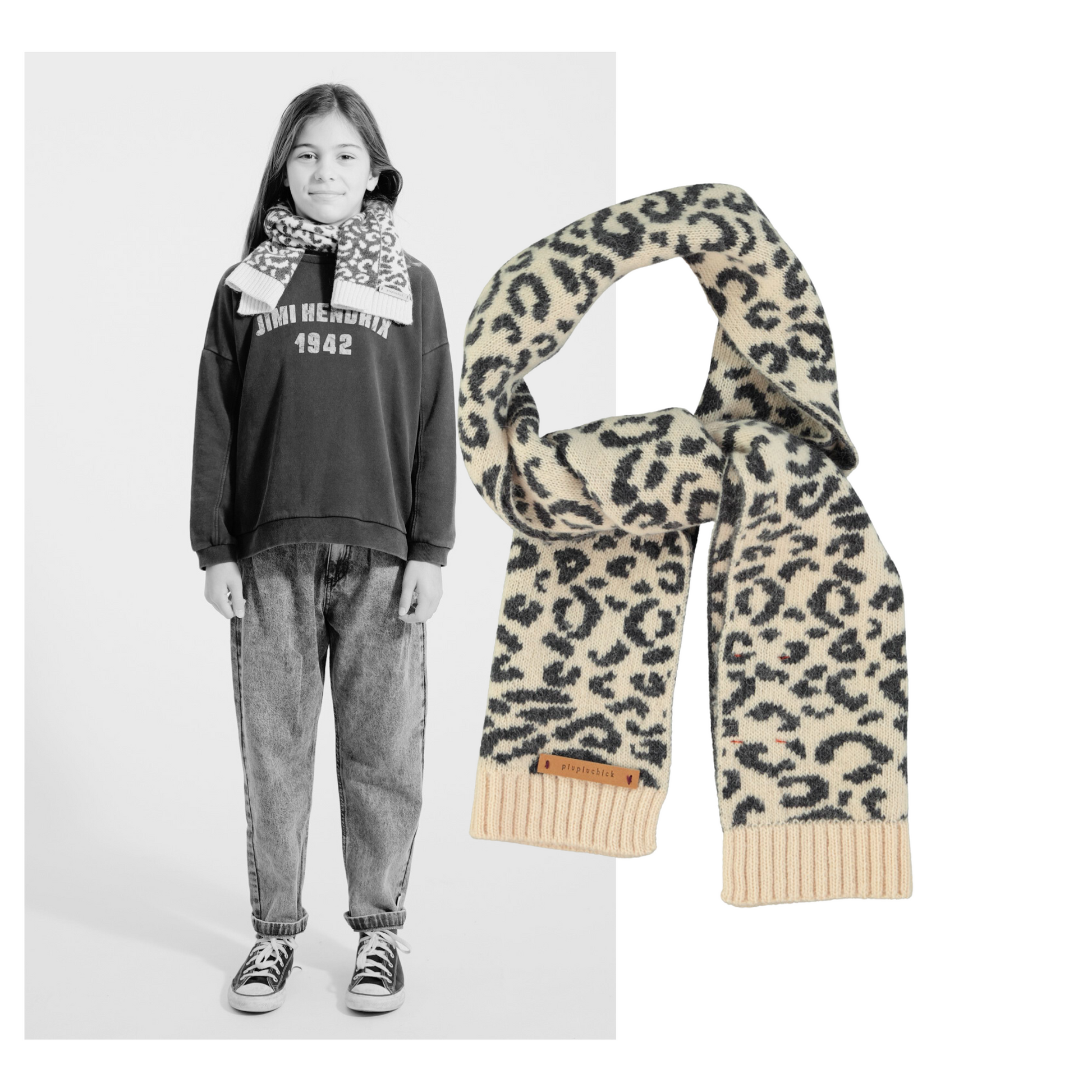 Piupiuchick AW25 - Knitted scarf | Light pink w/ animal print