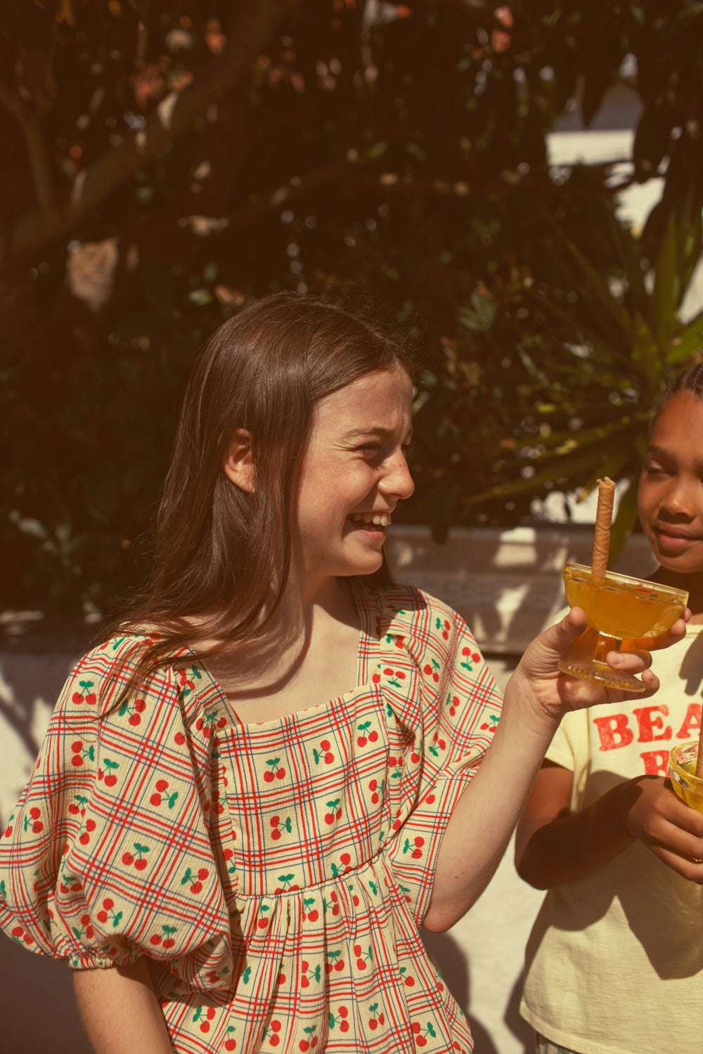 Piupiuchick SS26 - Kinder Bluse - Baumwolle - Gelb mit Kirschen